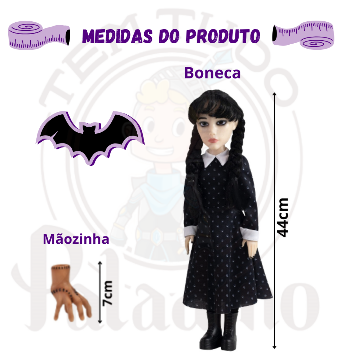 Conteúdo da Embalagem: 01 Boneca Wandinha e 01 Mãozinha.